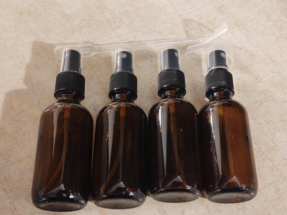 - 4 PACK 2 oz Amber Small Glass Spray Bottles 1.53 x 1.53 x 4.6 inches
