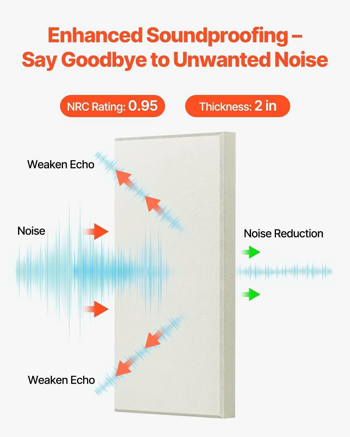 4 PCS Acoustic Wall Panels 2 in Thick 23.6 x 11.8 in Self-adhesiveBeige
