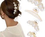 - 4 PCS Large Pearl Hair Claw Clips for Women Girls, Hair Barrette Clamps for Thic