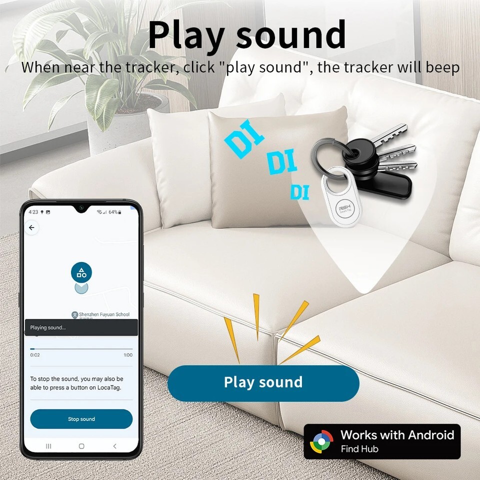 Long-Distance Tracking ? Supports finding objects even from a distance via the navigation of the Google Map ,and then you can play a sound to find it fast .