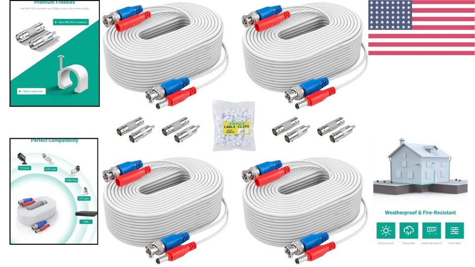 - 4-Pack 100ft All-in-One Video Power Cables for Reliable Security Installations