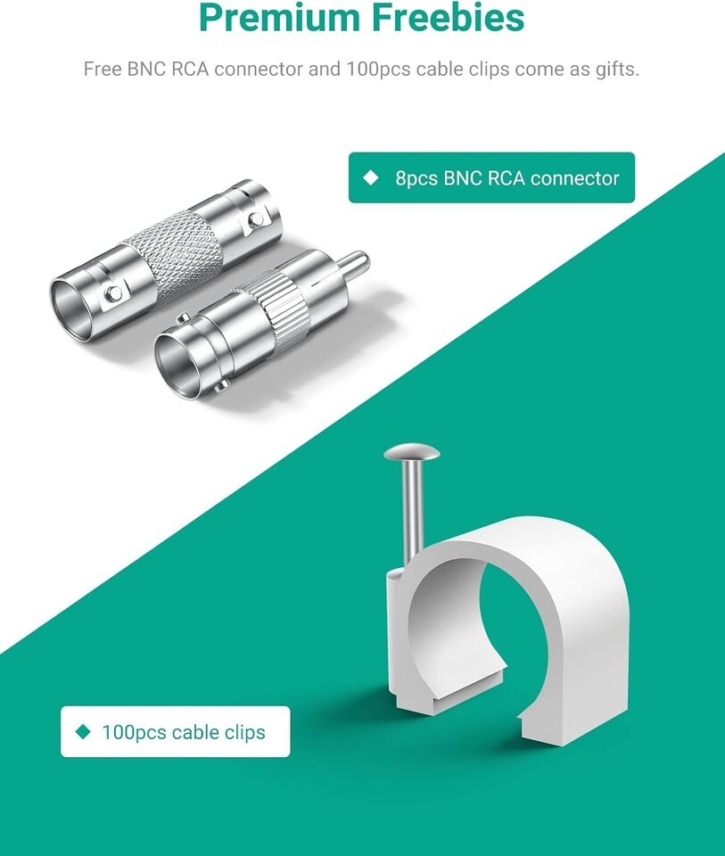 Complimentary BNC RCA Connectors: Included connectors extend your connection distance and serve as an interface converter for various setups.
