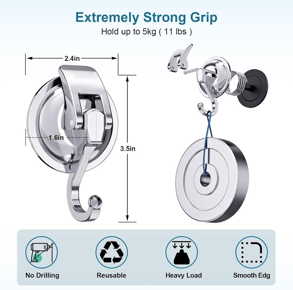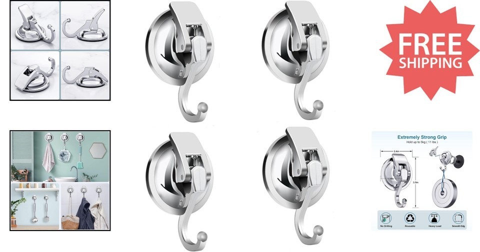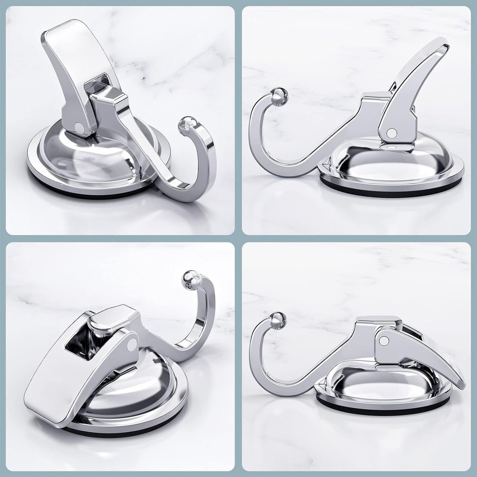- 4-Pack Heavy-Duty Suction Hooks with Chrome Finish for Elegant Organization