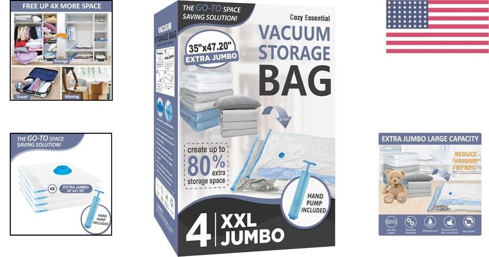 - 4 Pack XXL Jumbo Vacuum Storage Bags for Bedding & Comforters - Space Saver