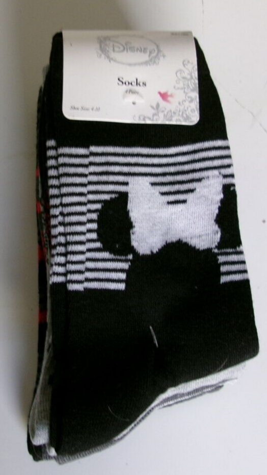 - 4 Pair Disney socks Shoe size 4-10 multi color Minnie Mouse theme