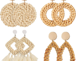 - 4 Pairs Rattan Earrings for Women Beach Essentials Tassel Dangle Boho Straw Earr