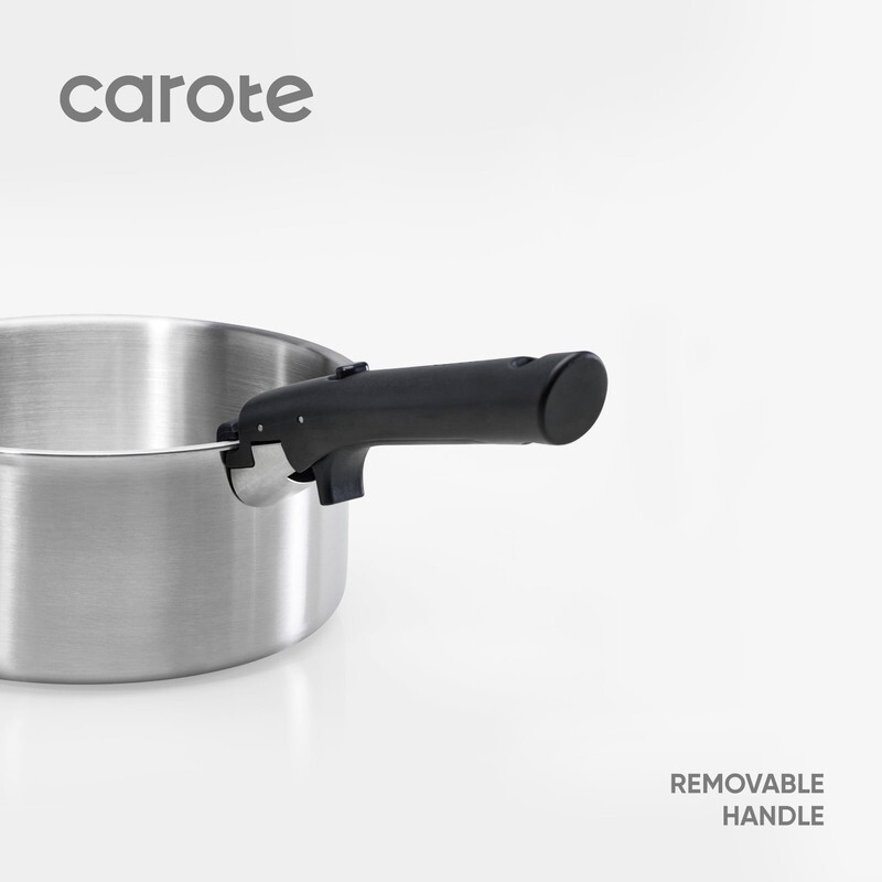 Carote?s set offers added convenience of detachable handles for easy storage and seamless transition from stovetop to oven. Its space-saving features make it a smart choice for modern kitchens.