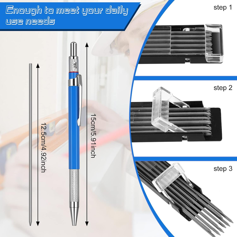 Size Information: the engineering pen is 15 cm/ 5.91 inches in length, with 2B or HB refill, the refill in the kit is 2 mm/ 0.08 inch, length about 12.5 cm/ 4.92 inches, easy to use; You can choose different color refills for marking according to your different marking needs