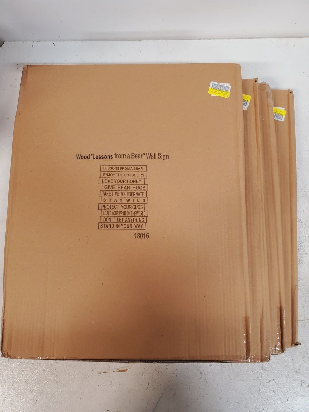 - 4 Qty Young's Inc Wooden Lesson from a Bear Wall Signs 20"Hx15"W 18016 (4 Qty)