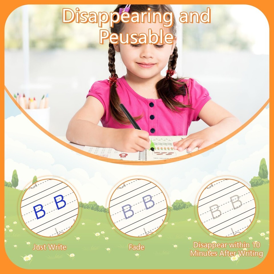 Reusable Grooved Writing Books: The matching refills use magic ink, handwriting will automatically fade and disappear within 10 minutes after writing, great for repeated practice. This a great-value writing books tailored for kids