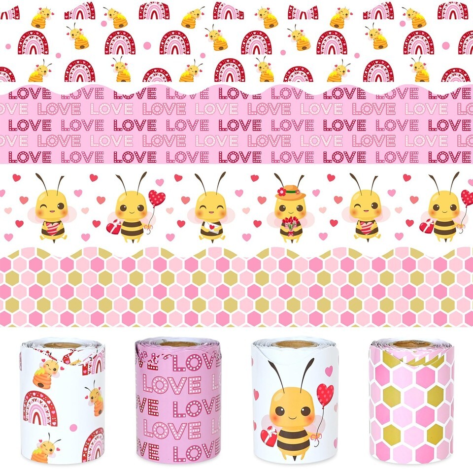 Basic Bulletin Board Borders Kit: Our Valentine's Day Bee Bulletin Board Borders set includes 4 rolls of bulletin board borders, each roll is 10 meters/32.8 feet long and 7.5 cm wide, also comes with 2 rolls glue points which is convenient for you to use