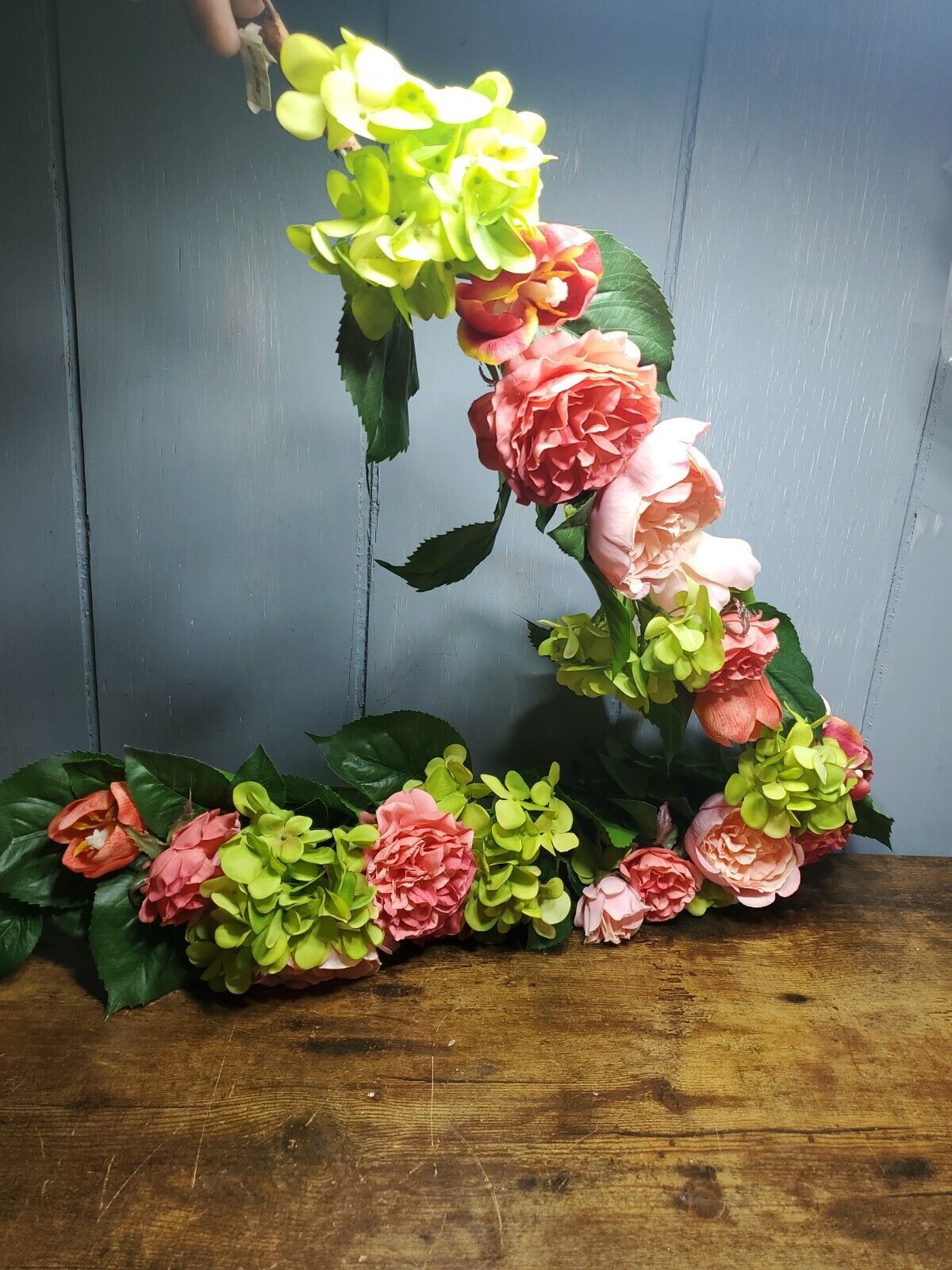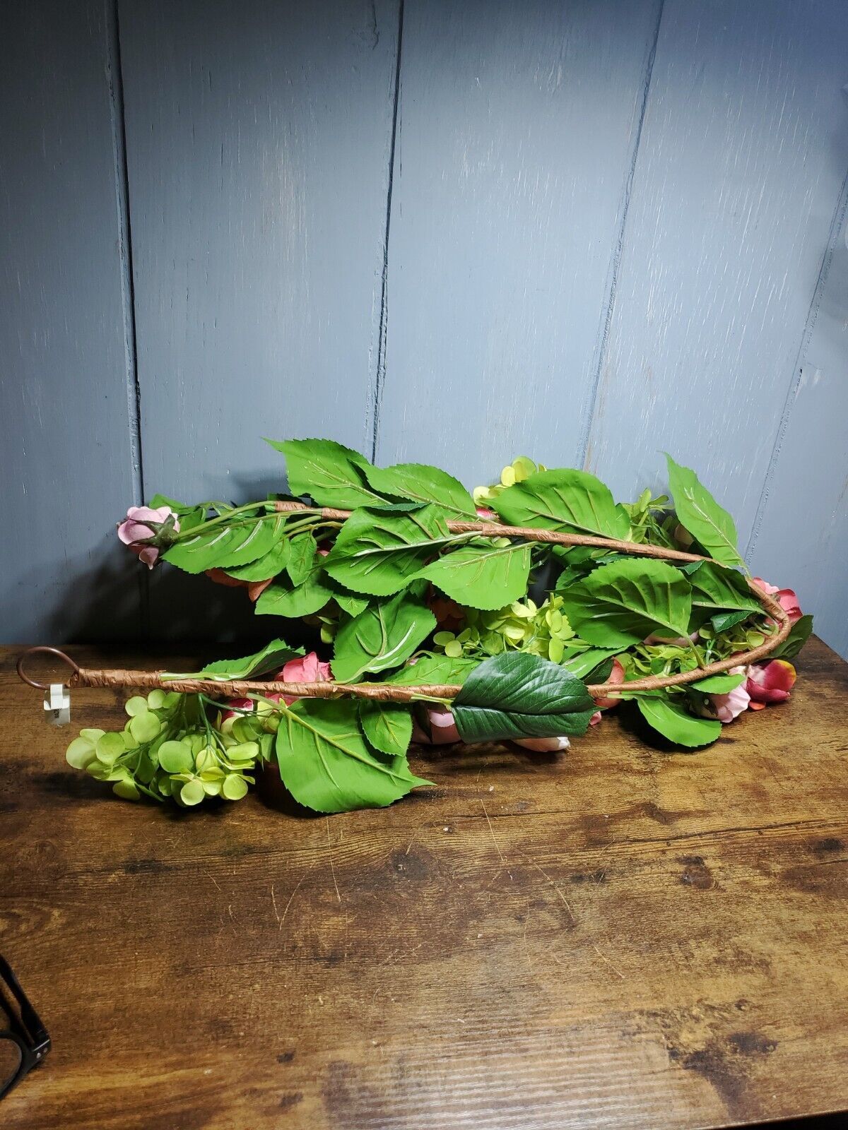 - 4' ROSE, HYDRANGEA, AND TULIP GARLAND RED PINK GREEN FLORAL. QVC
