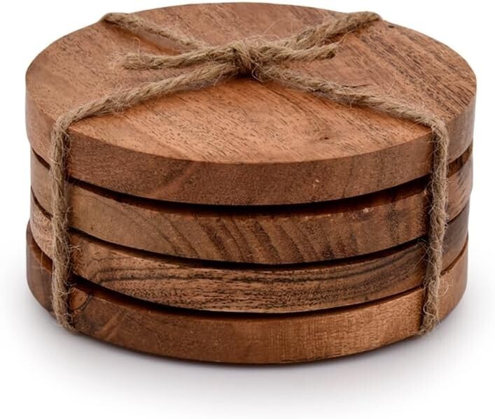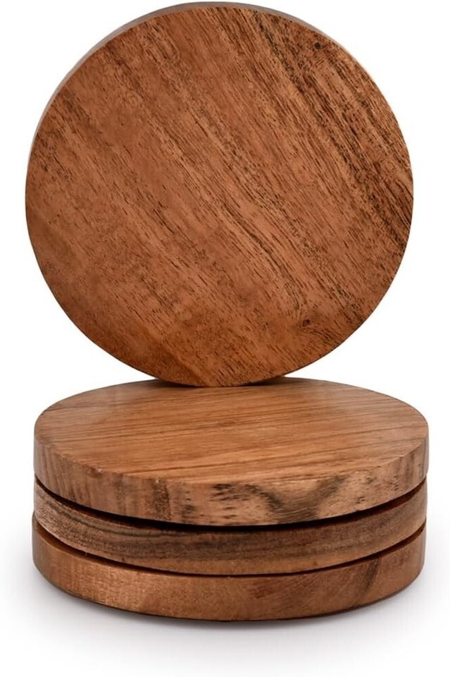 - 4" Round Acacia Wood Coasters – Elegant Tabletop Protectors for Stylish Living