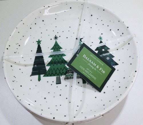 4 Salad Dessert Plate Trees Balsam & Fir 8" Plates Melamine Christmas Tree New