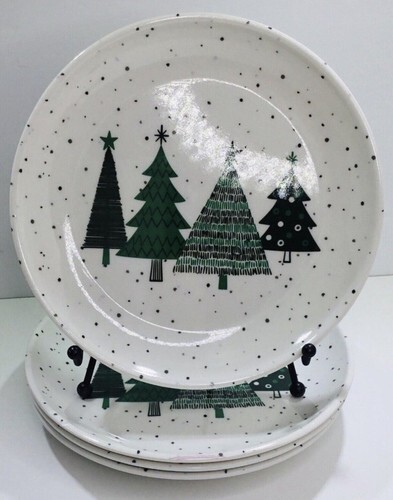 - 4 Salad Dessert Plate Trees Balsam & Fir 8" Plates Melamine Christmas Tree New