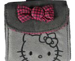 Esto es para una nueva billetera Hello Kitty Grey Flap Ballet Red Houndstooth Bow Falso de gamuza Cierre el cierre del boton, 4 bolsillos, 1 bolsillo de factura, 6 ranuras para tarjetas Mide 4 "x 4" x 1.5 "