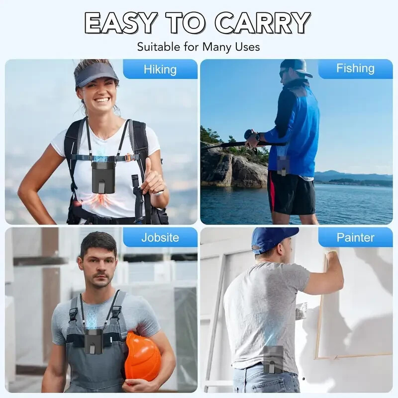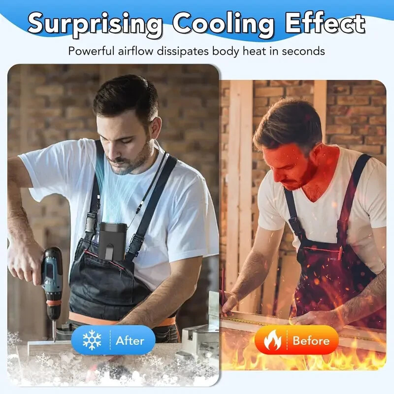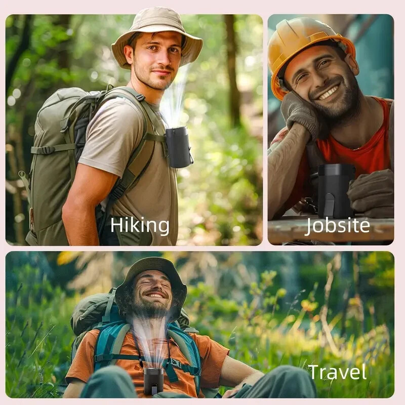 4-in-1 Wearable Cooling: Use as a waist fan, neck-hanging fan (lanyard included), desktop unit, or handheld fan