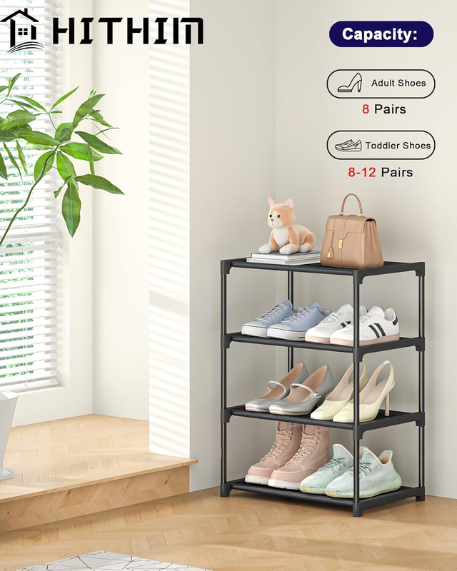 - 4 Tiers Small Shoe Rack,Narrow Stackable Shoe Shelf Organizer,Sturdy Shoe Stand,