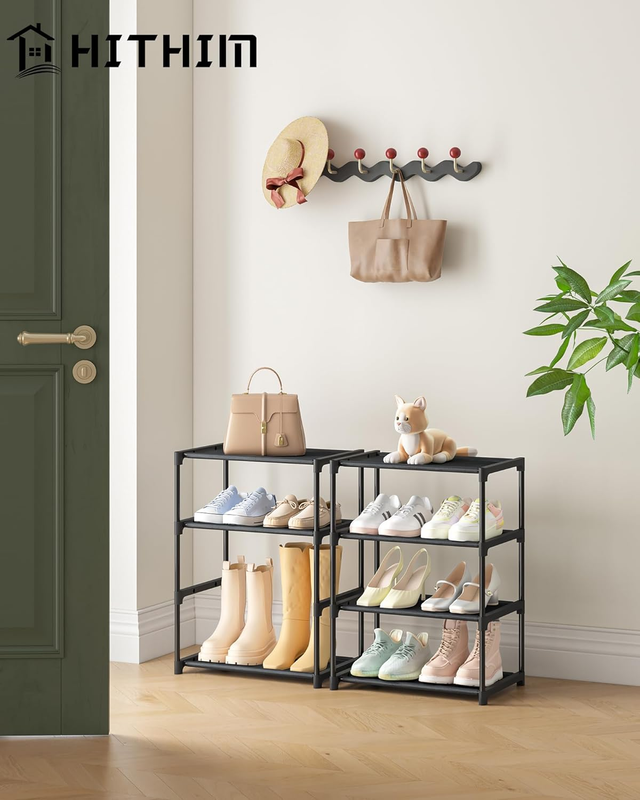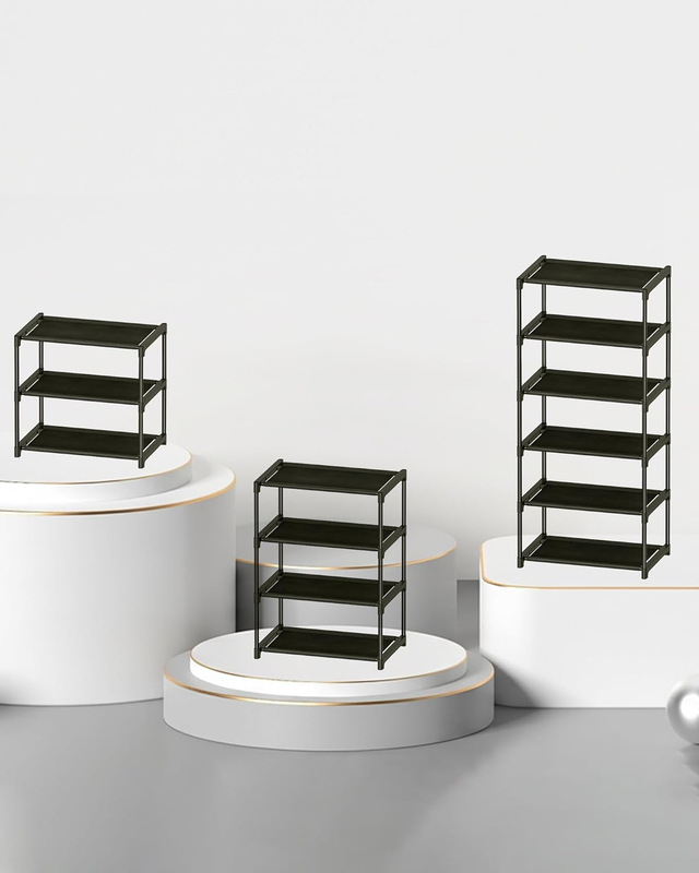 [STACKABLE DESIGN] The small shoe organizer adopts stackable tenon joint design. This thin shoe rack reduces the use of floor space and is ideal for a variety of small places. You can order two 4-tier mini shoe racks, you can stack the black shoe self to a 8-tier shoe rack, as an entry shoe rack or closet shoe rack, or front door shoes.