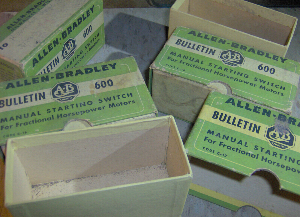 - 4 Vintage 1960s Cardboard BOXES Allen-Bradley Starting Switch Bulletin 600