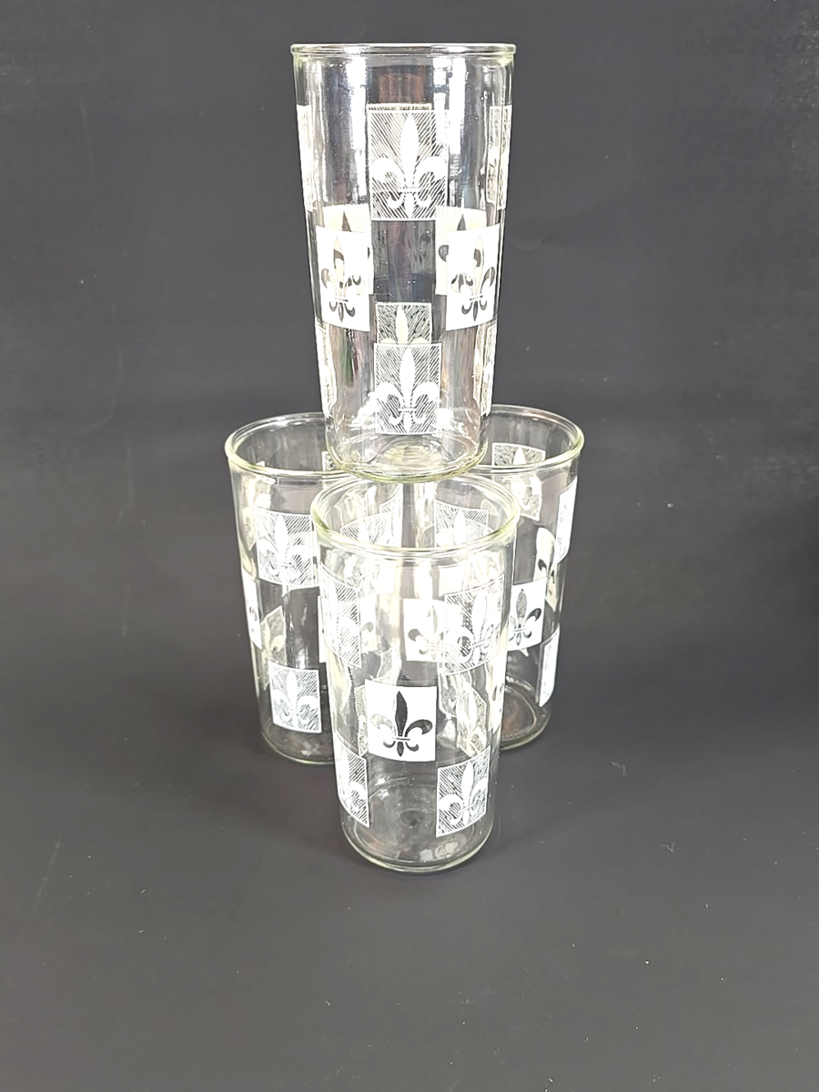 - 4 Vintage Drinking Glasses MCM Mid-Century Fleur De Lis Libbey