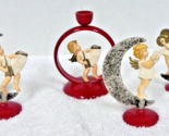 4 Vintage German Angles Band w Silver Mica Moon 1 Candle Holder 3 Figures