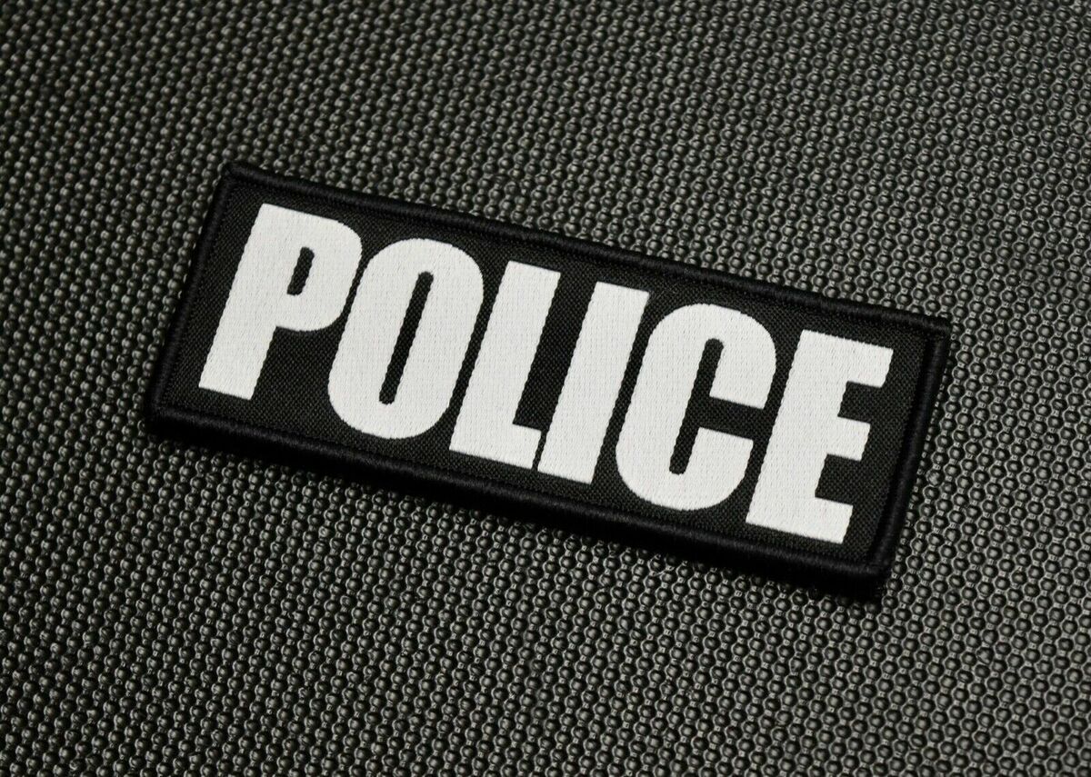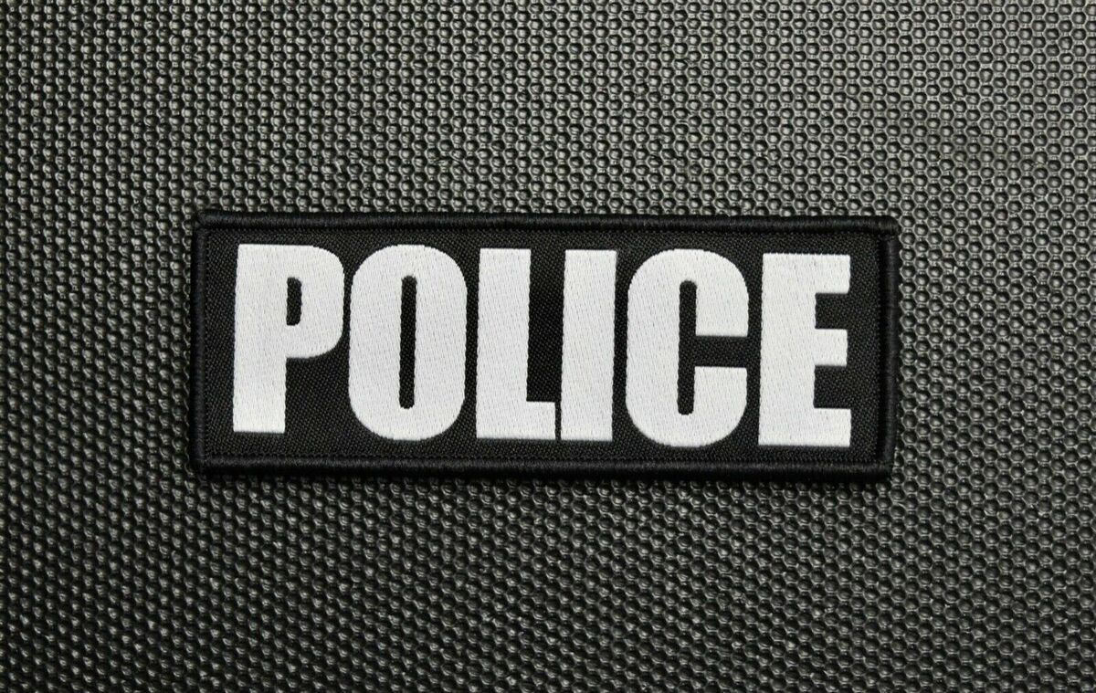 - 4" X 1.5" Woven POLICE Patch Law Enforcement Hook Loop Backing White & Black