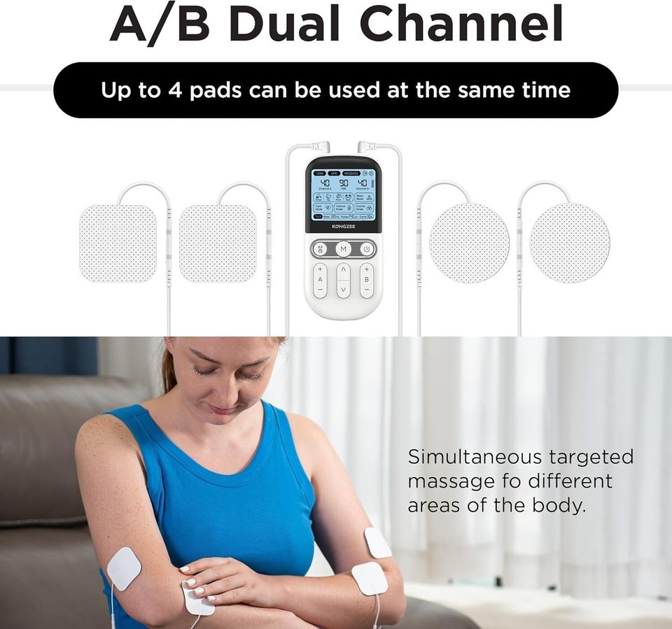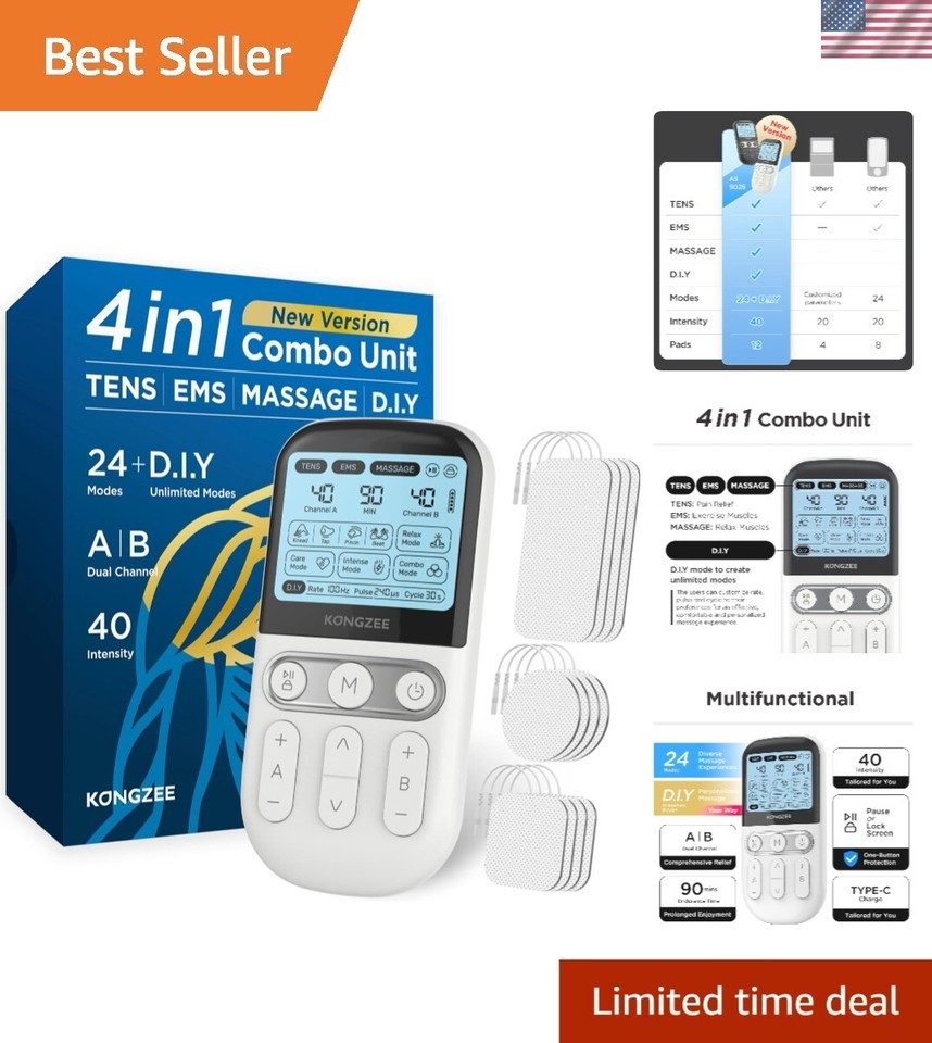 - 4 in 1 Dual Channel TENS Unit - Rechargeable Muscle Stimulator for Pain Relief