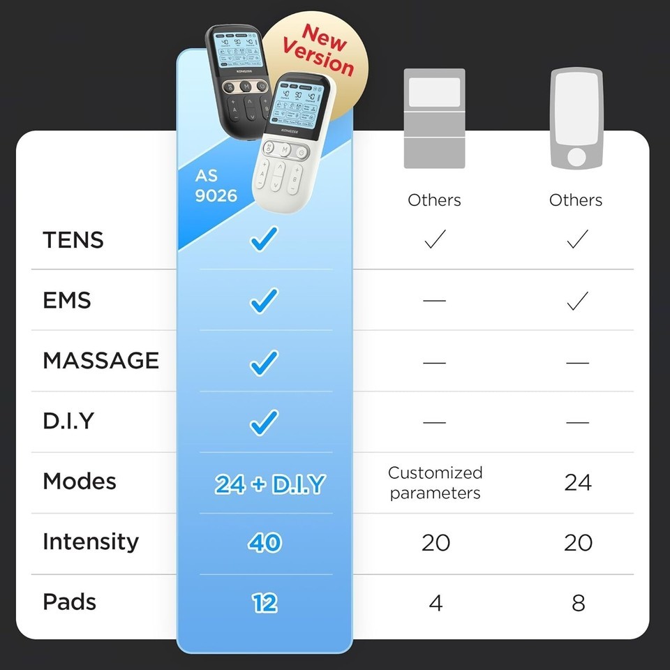If you're seeking a reliable solution for muscle tension and pain management, our 4 in 1 Dual Channel TENS Unit is the ultimate answer. With the blend of advanced technology, user-centric design, and the flexibility to tailor your sessions, indulge in a luxurious at-home therapy that caters to your specific pain relief needs.