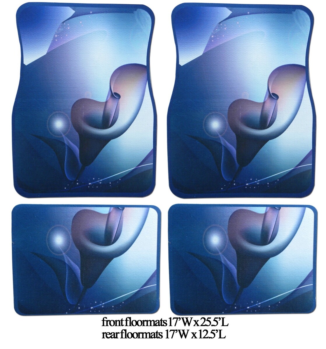 - 4 piece set universal rubber Floor Mats with Lily design fits almost any car