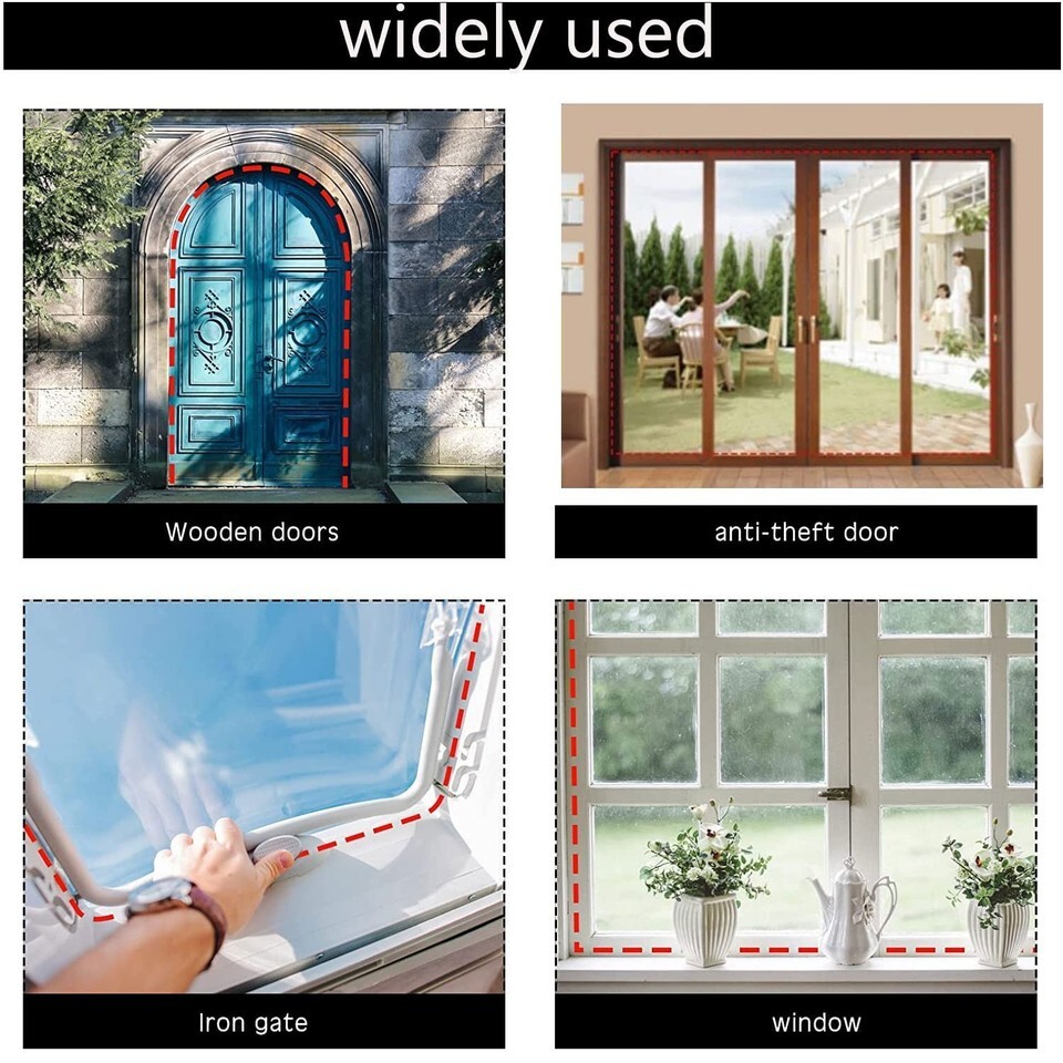 ?WIDELY USED?The Door Insulation Strip is a tough, long-lasting self-adhesive tape with minimal compression that helps prevent rattles, vibrations and squeaks. It is widely used as weather stripping, gaskets or cushioning and stabilizes major appliances such as doors, windows, furniture, electrical cabinets, speakers, toys, crafts, sports equipment, vents, air conditioning, plumbing, HVAC. Also, in cars, trucks and boats.
