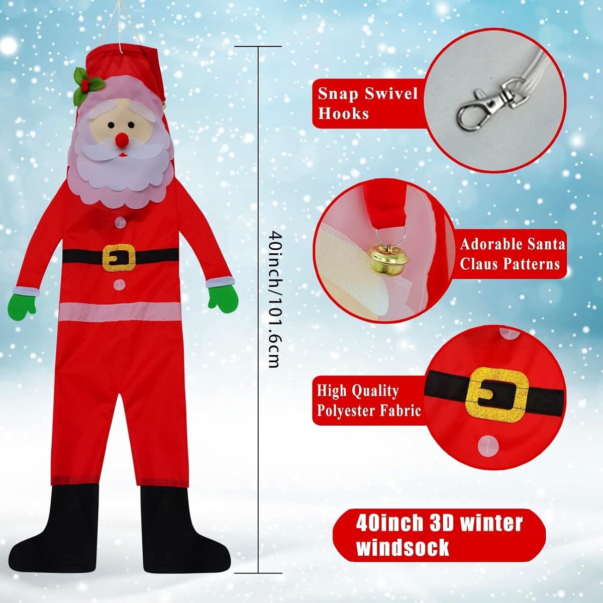40 Inch Santa Windsock Christmas Windsocks Hanging Santa Outdoor Decorations ...