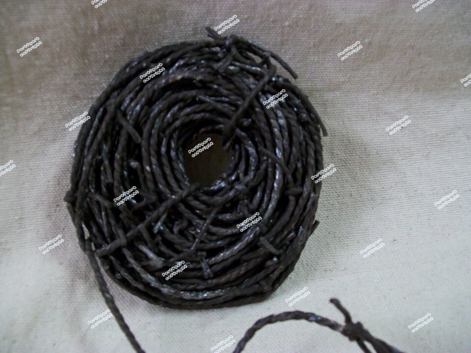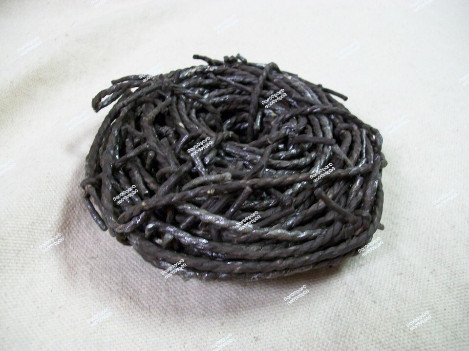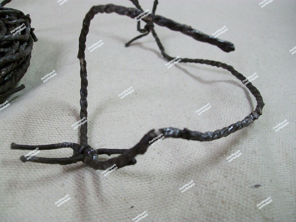 Fake Barb Wire Garland. Has a corroded look to it. A good prop decor if your looking for something with a weathered or aged look to it. Mixed colors blackish brown with silver tones. There's some paint caked on in places and it tends to crack and shed when you unwrap or flex it around. You can see some tan colors where the paint chips. Flexible. Not sure of the material content, the package says paper near top. It looks like a thin twine like cording. Maybe like a paper raffia. Could be used as a costume accessory, Haunted Halloween Prop, Gag, Prank, Decoration, Floral, Western Wedding Crafts, Bouquet, Redneck Wedding, etc. Decorative Use Only, Not a Toy.