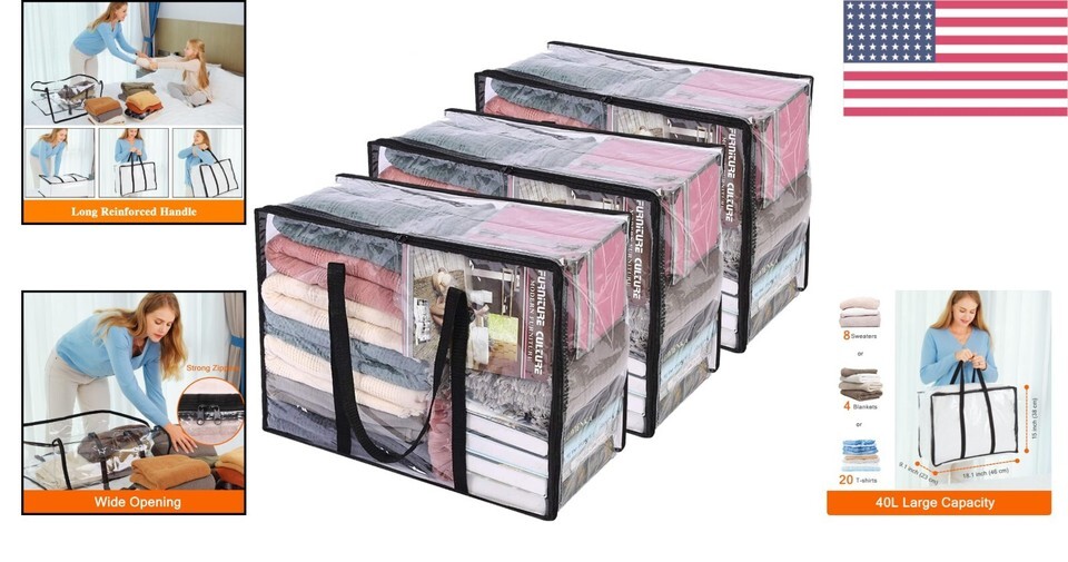 - 40L Clear Zipper Storage Bag Set - Perfect for Comforters, Blankets, and More