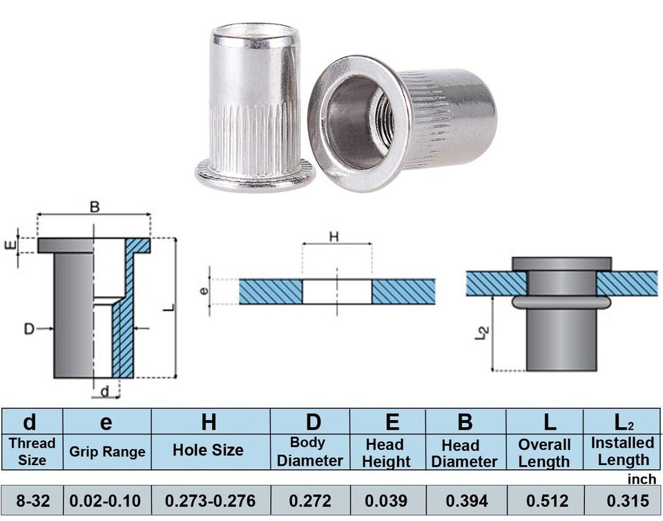- 40PC Stainless Steel 8-32 Rivet Nuts | Quick Install Nutserts for Projects