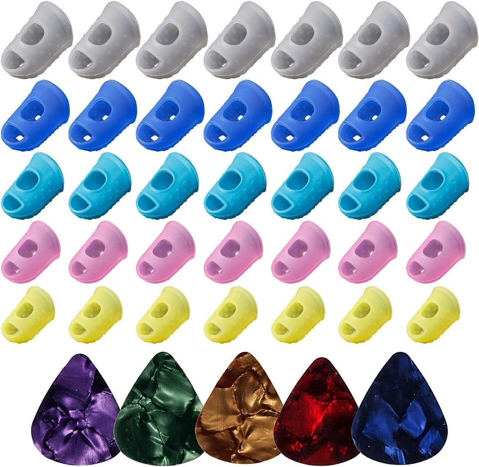 - 40pcs Silicone Guitar Finger Protectors & Picks - 5 Sizes for Ultimate Comfort