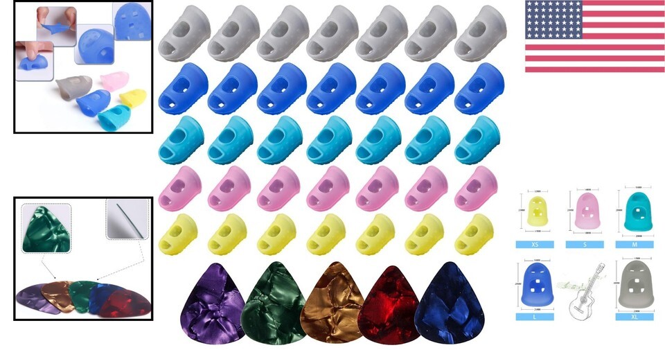 Experience unparalleled comfort and protection while playing your favorite stringed instruments with our premium set of 40 silicone guitar finger protectors and picks.