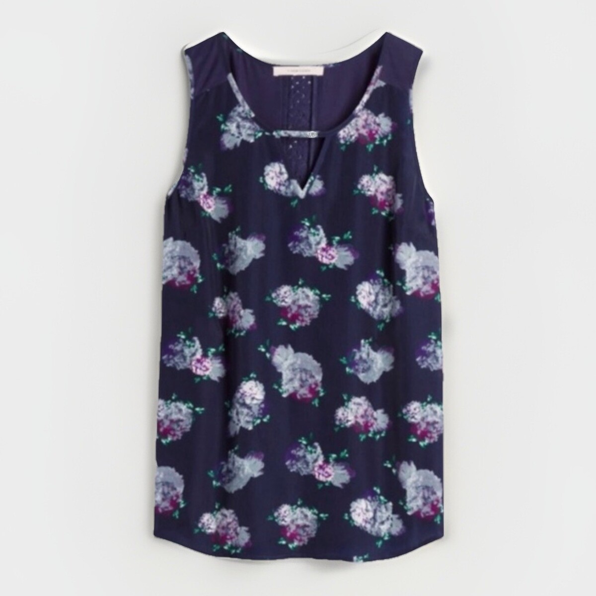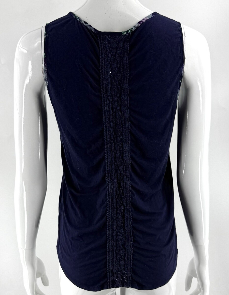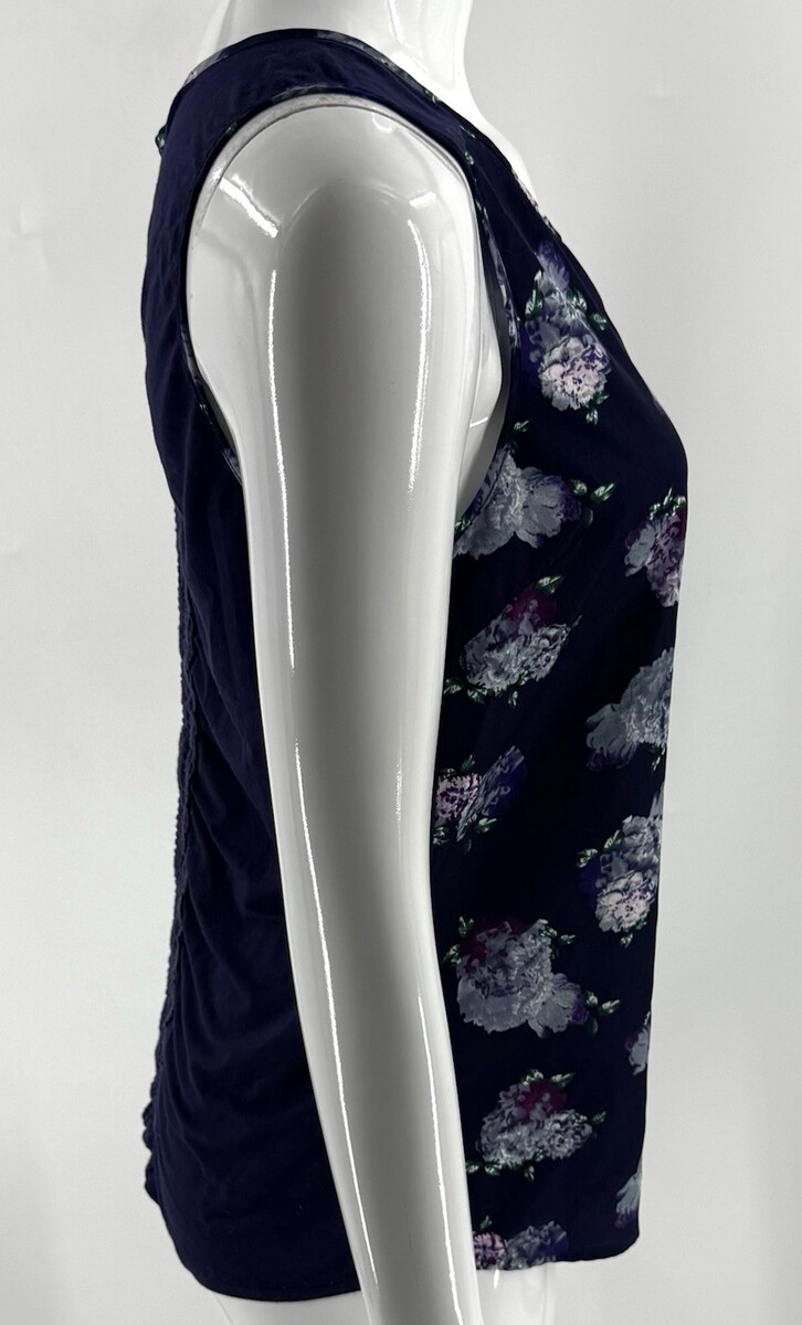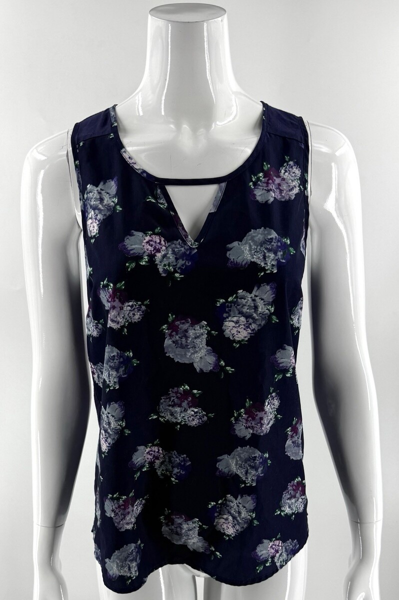 41 Hawthorn Liano Floral Mixed Media Sleeveless Blouse Tank Top Blue Small