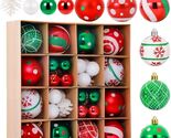 - 42 Pc Christmas Tree Balls Ornaments Glitter 2.36" & 1.18" Red Green White