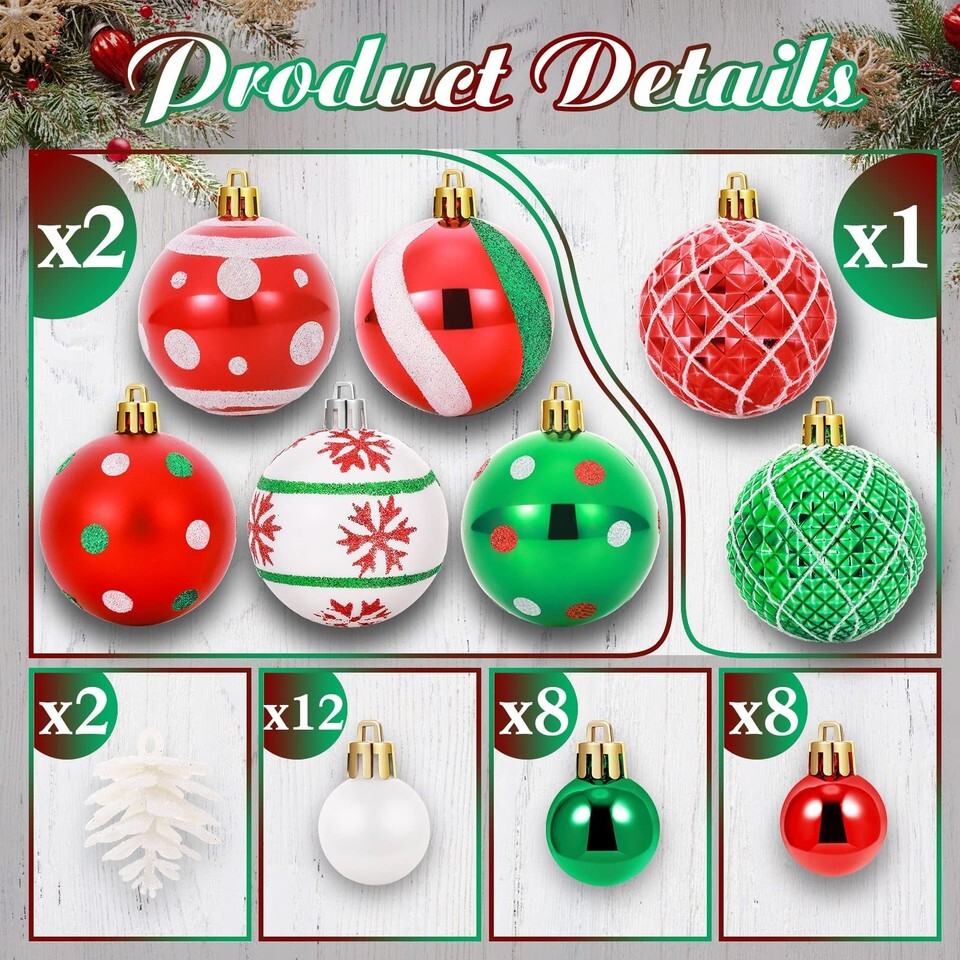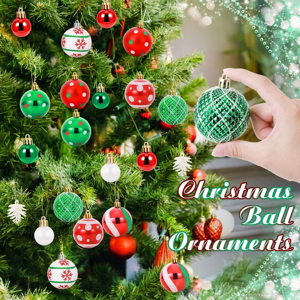 Christmas Ball: this Xmas tree ornaments set is made of quality plastic material, which is sturdy and safe to use, compared with traditional glass products, it is in nice performance, don't worry about the shards causing harm to children, the elderly and pets