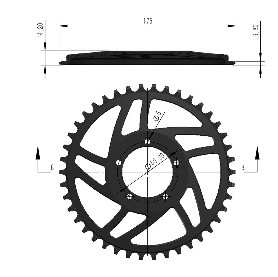 Number of teeth: 42 teeth (positive tooth thickness 3.6mm*21/negative tooth thickness 1.9mm*21)
