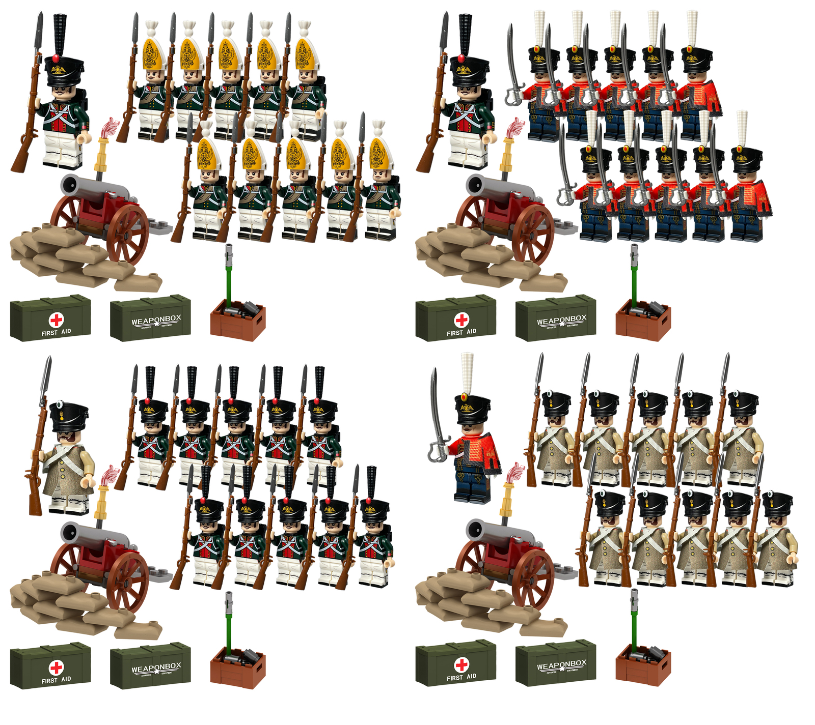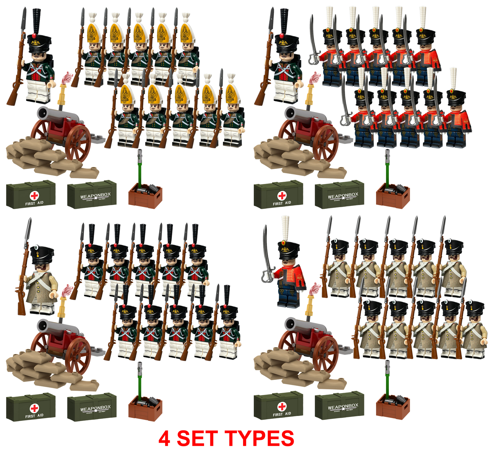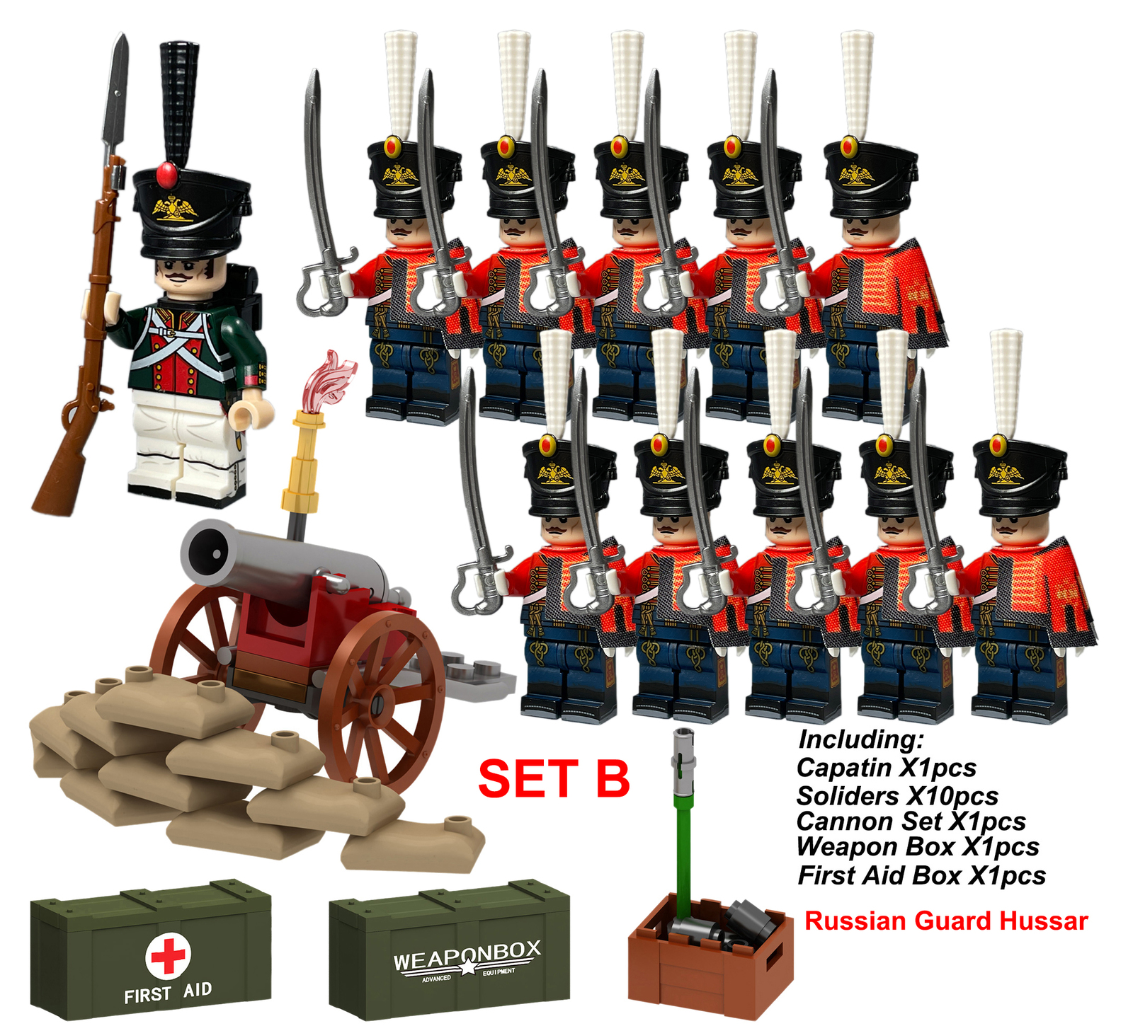 - 44pcs Russian Pavlovsk Hussar Foot Guards Minifigure with Weapons & Accessories
