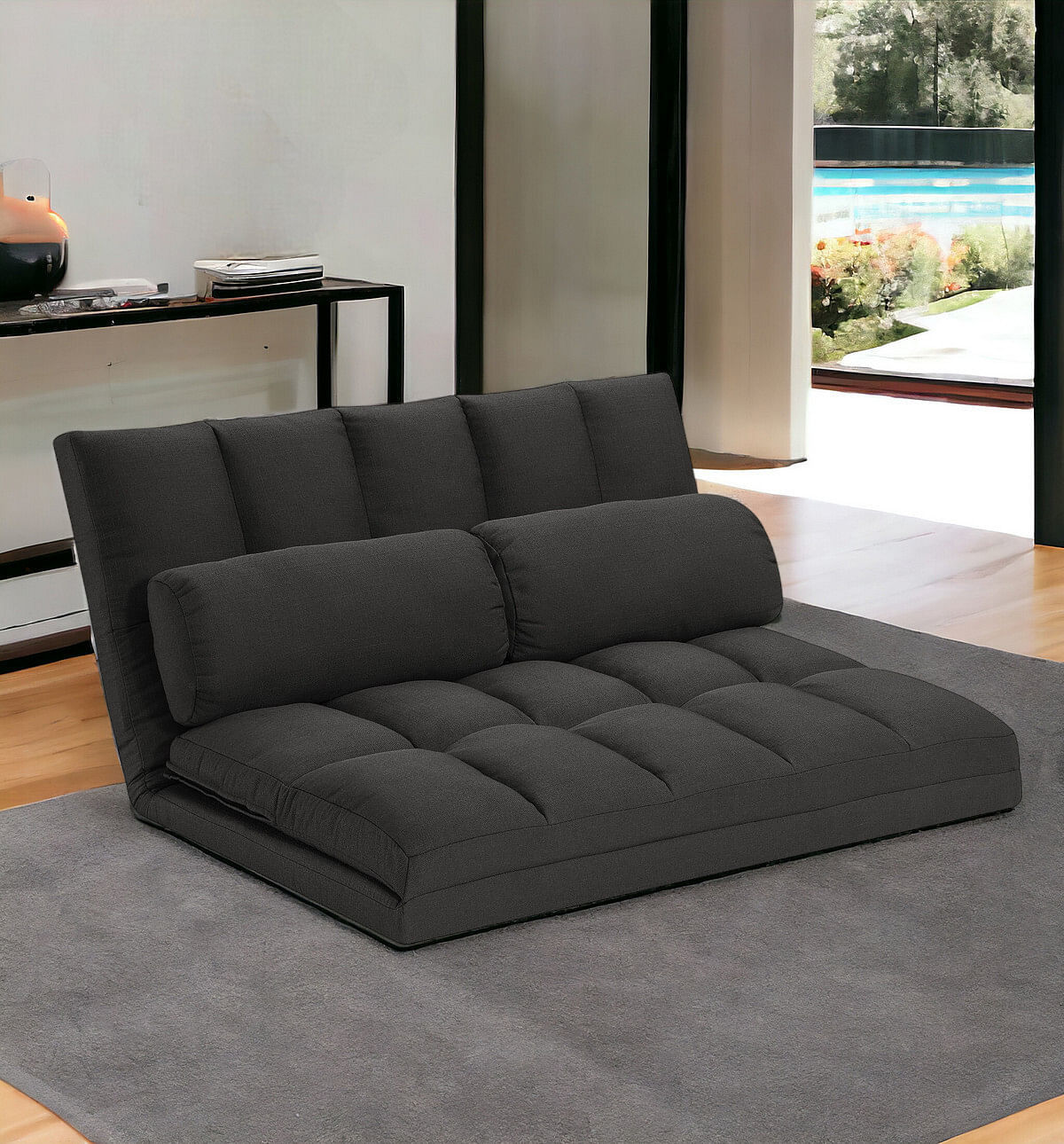 Designed for comfort and good looks, this 45-inch gray futon convertible sleeper loveseat with tufted cushions brings style and versatility to your living space. Upholstered in a chic solid color, this rectangular love seat features a tufted back design for added charm. Complete with two cozy toss pillows in a coordinating dark gray shade, this sofa is a great showpiece that effortlessly elevates your room decor, making it a must-have addition to your home. 22.8-inch H x 44.5-inch W x 26.4-inch D