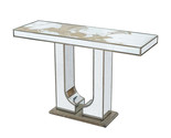 47" Rectangular Console Table: Floral & Mirrored Silver Finish