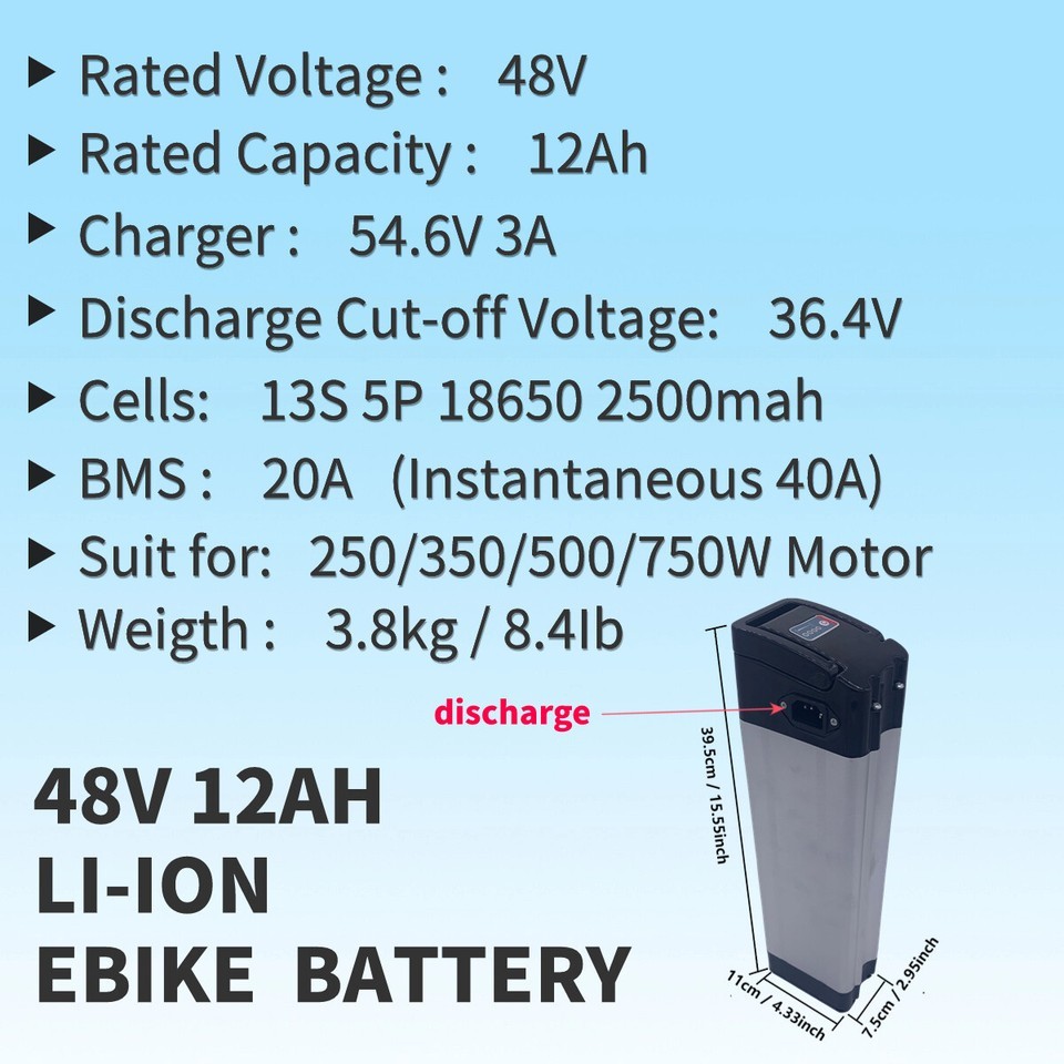 - 48V12Ah 1000W EBIKE Battery Pack Lithium 30A BMS Electric Bicycle li-ion Vehicle