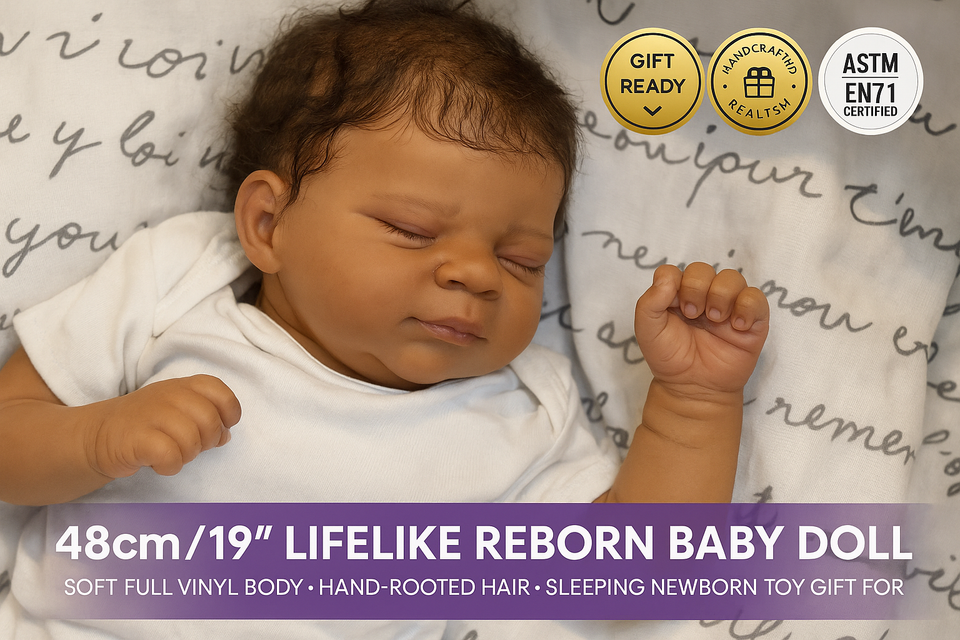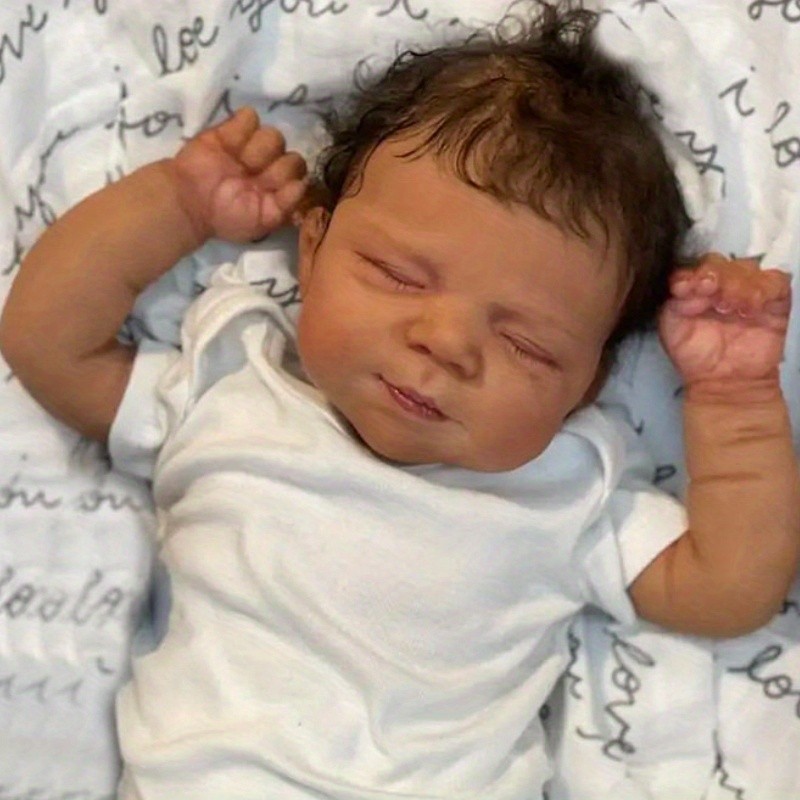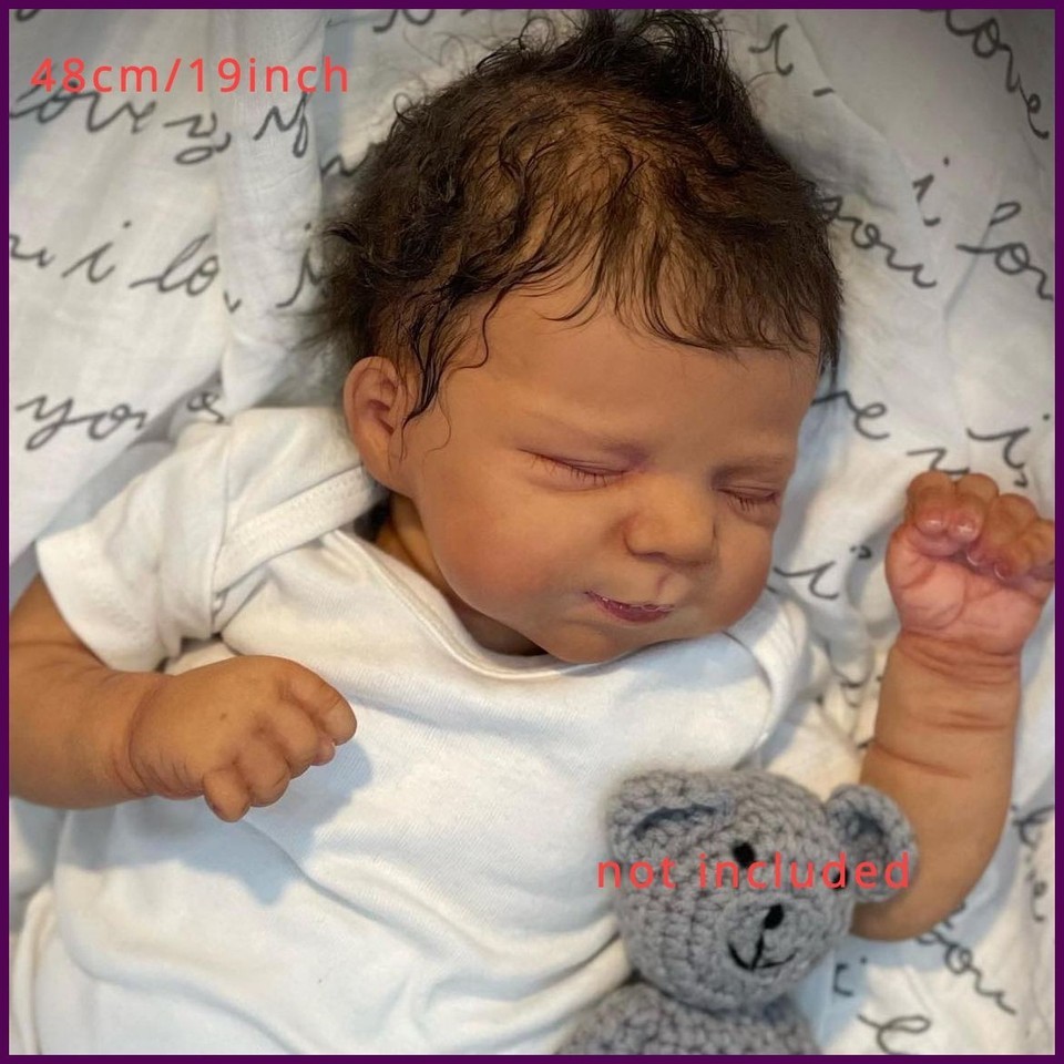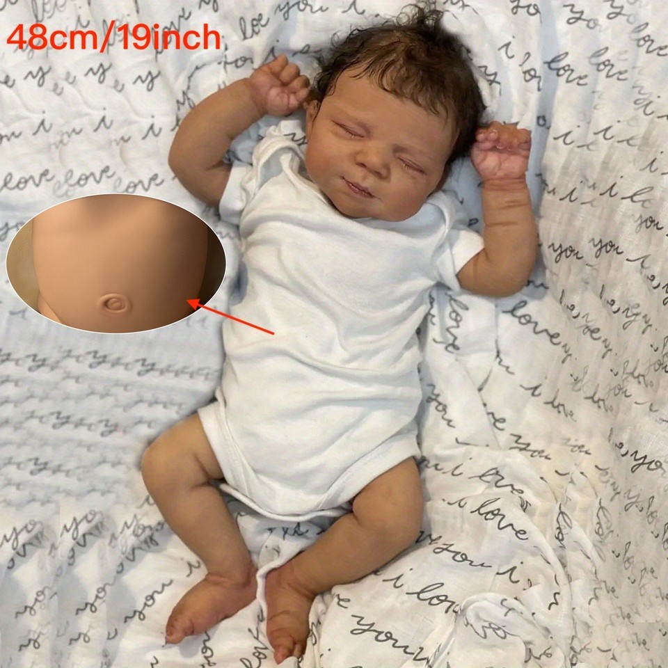 48cm 19inch Reborn Baby With Full Body Soft Vinyl, Asleep Black Skin Doll Newborn Bebe Girl Toy for Kids Birthday Gift Lifelike