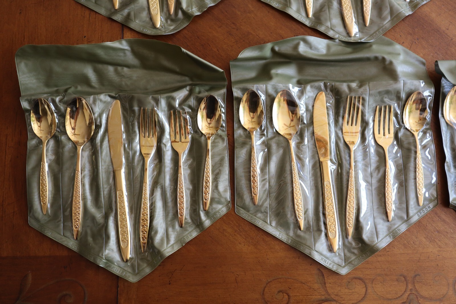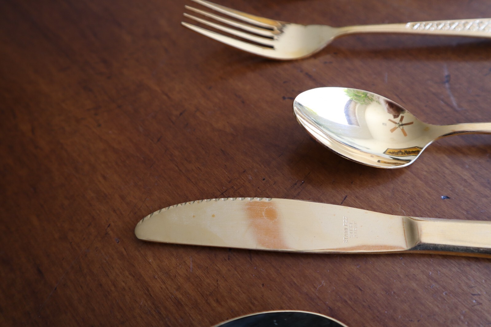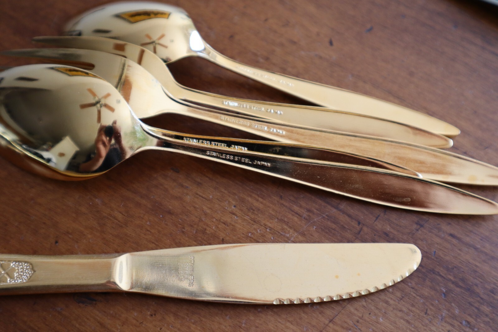 They are only marked Stainless Steel Japan. I did find another set online that had little inserts that showed that the flatware was 23K Electroplated and made by Lifetime Cutlery.