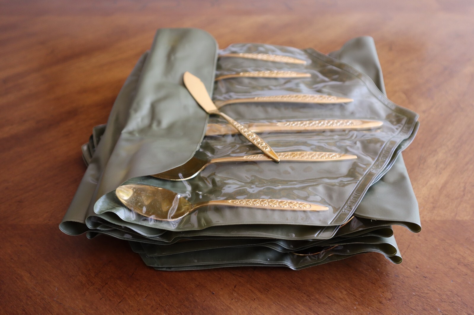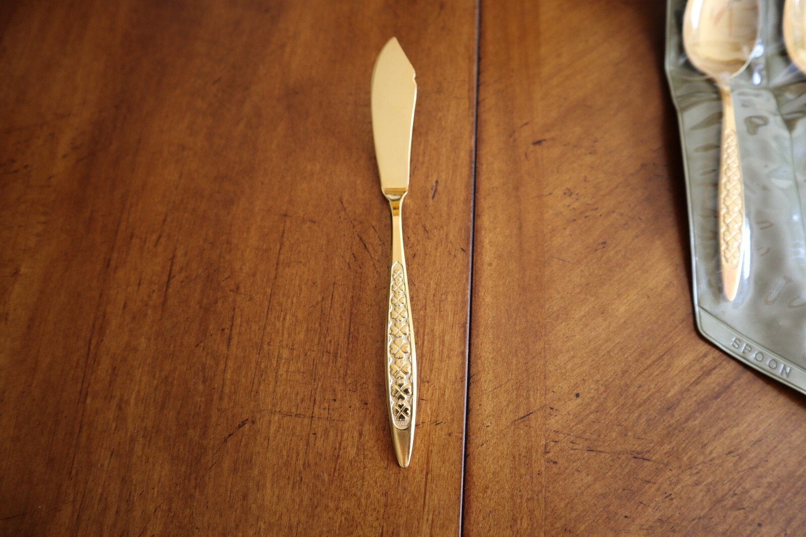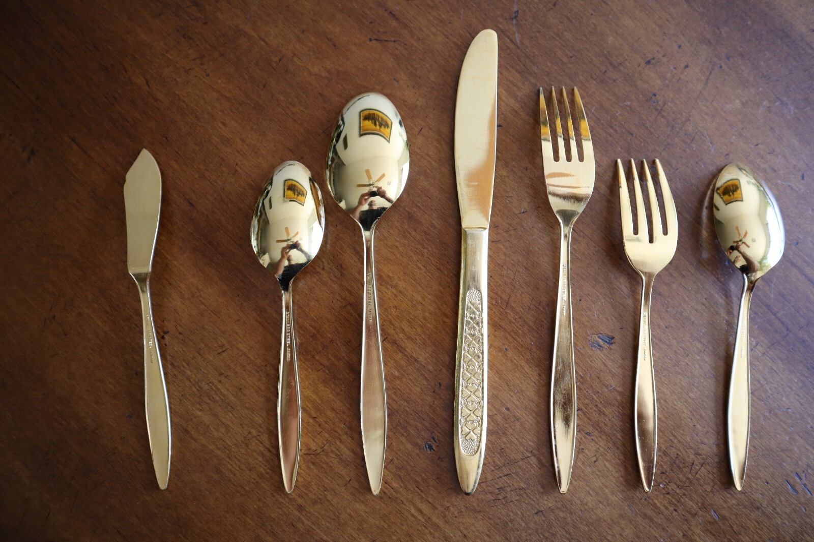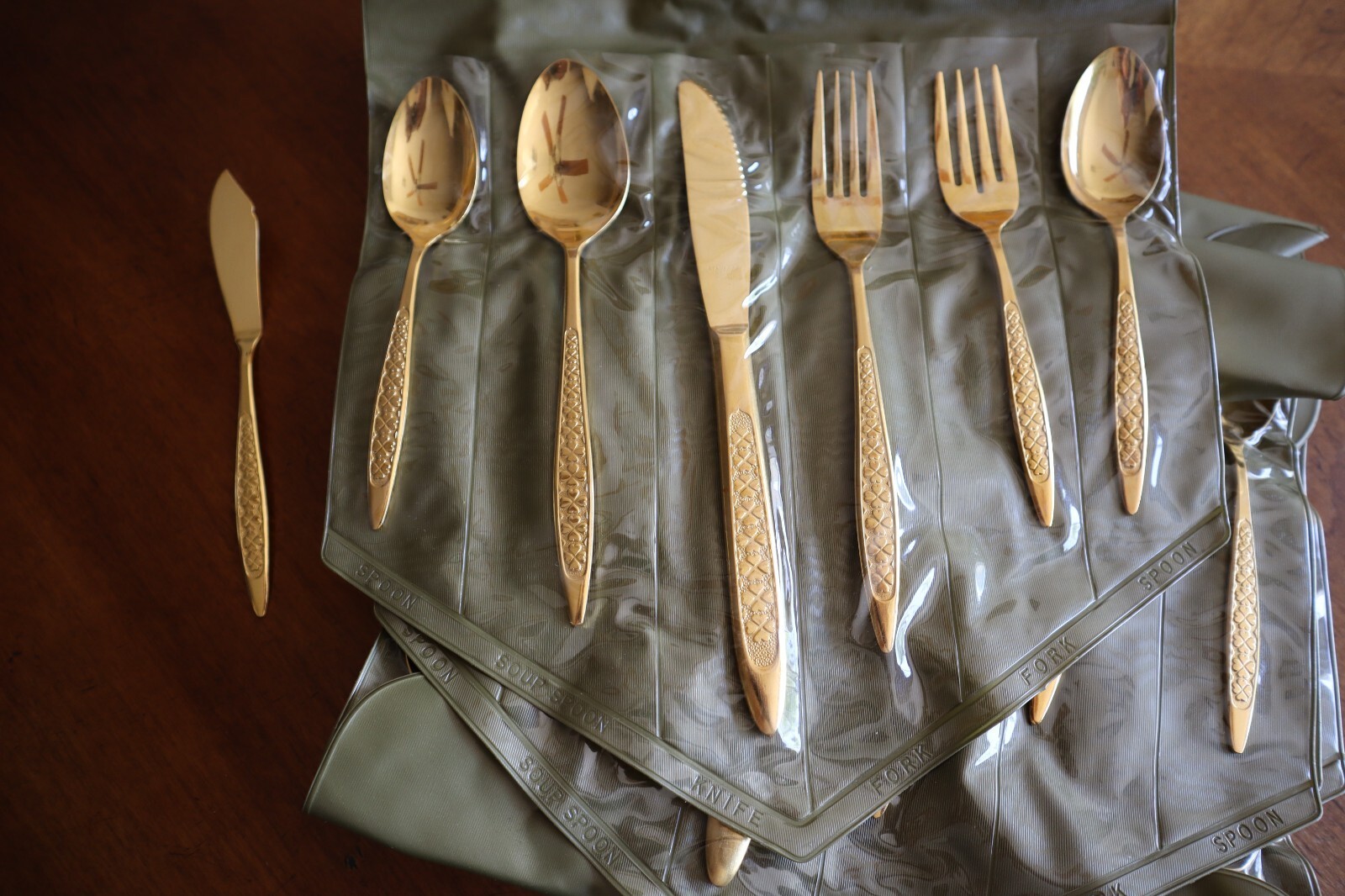 They are only marked Stainless Steel Japan. I did find another set online that had little inserts that showed that the flatware was 23K Electroplated and made by Lifetime Cutlery.
