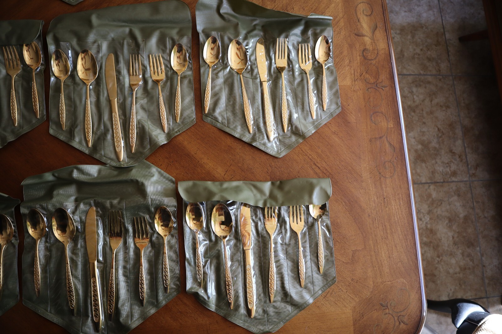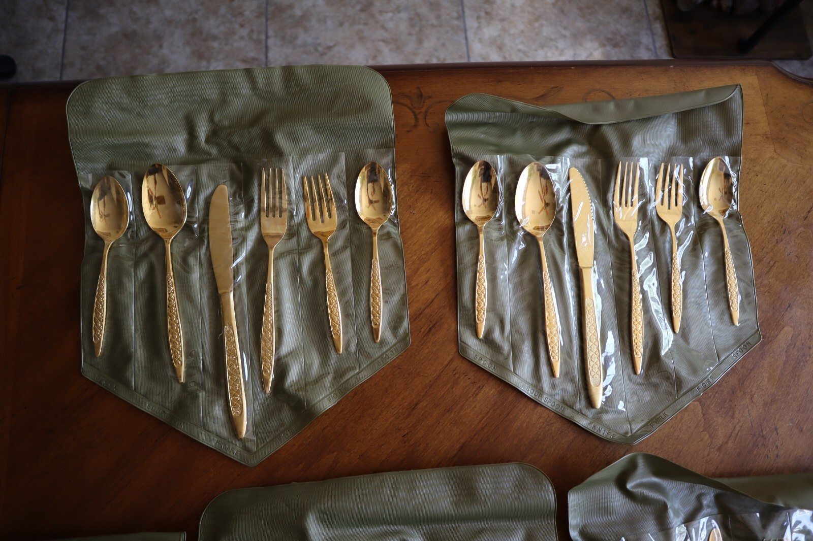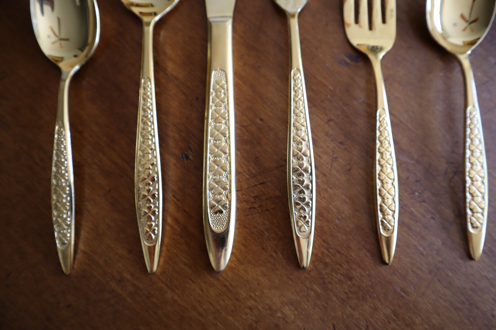 49x Lifetime Cutlery Corp 23k Gold Electroplate Japan Clover Heart Service for 8