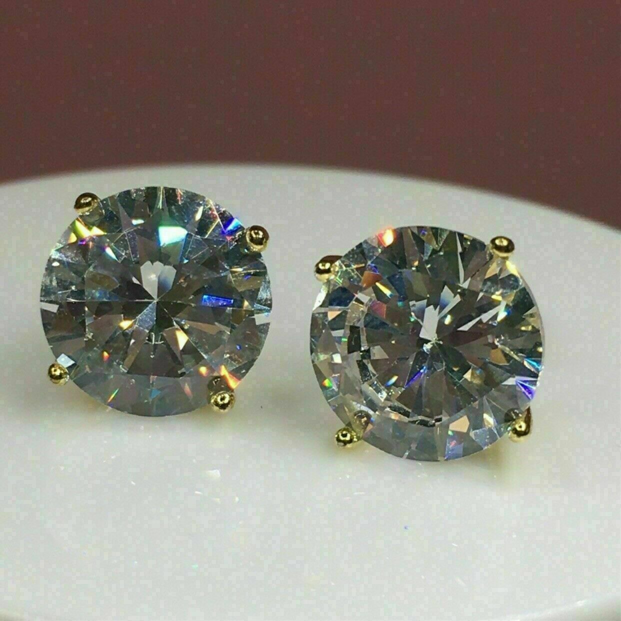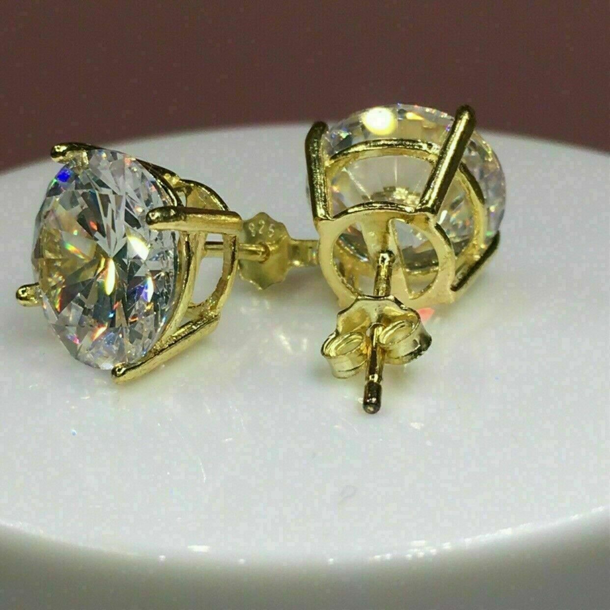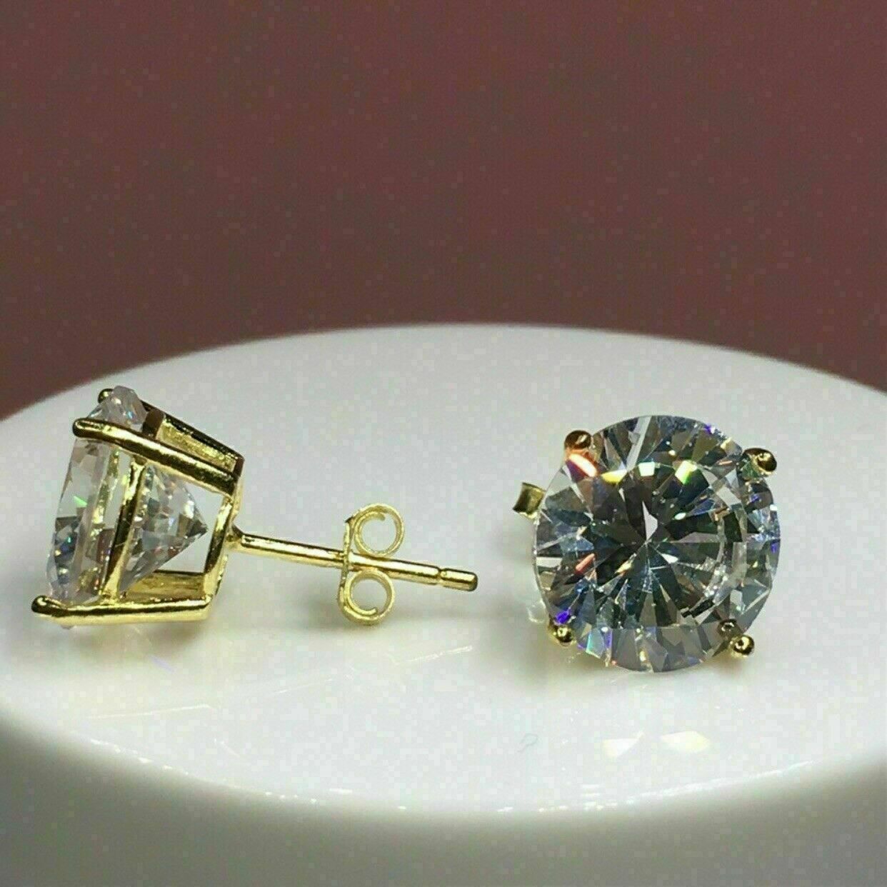 - 4Ct Round Cut Moissanite Solitaire Men's Stud Earrings 14K Yellow Gold Finish